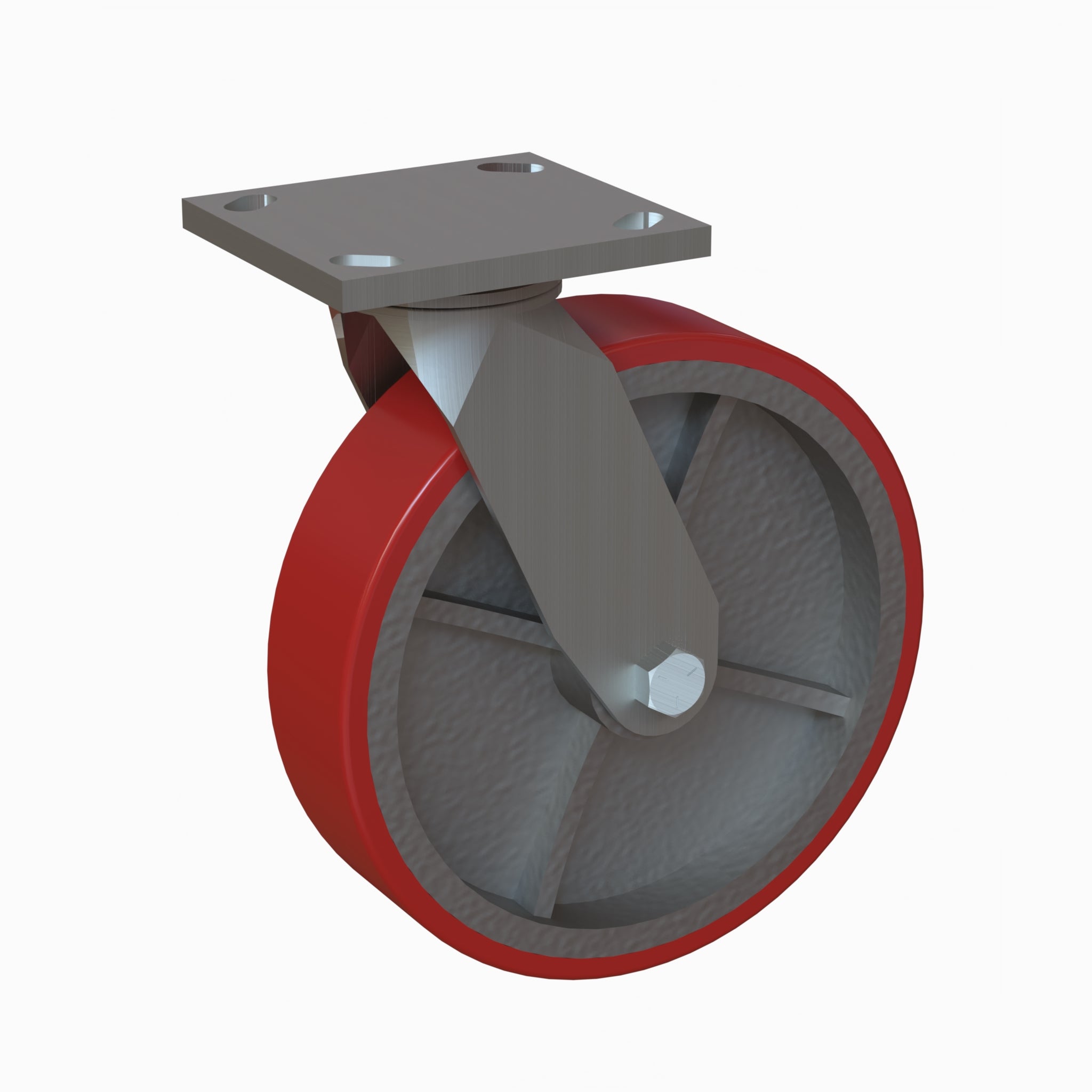 Caster, Swivel, 8" x 2" Poly, Red; Roller Bearing (8Y)