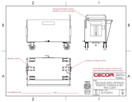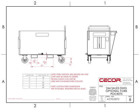 Our intelligent design maximizes cube capacity while minimizing footprint, preserving valuable floor space. With a generous 30” lip height and an impressive 1,500 lbs of capacity, this cart is ideal for fitting under machine tool conveyors, ensuring seamless integration into your workspace. Experience unparalleled efficiency and versatility with CECOR's Smart Design Cart.