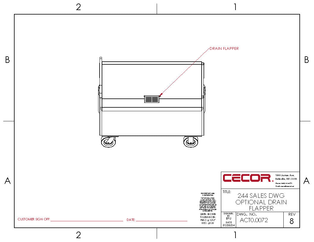Crafted for industrial environments, CECOR’s Heavy Duty Dumping Cart Model 244 combines heavy-load capacity with a minimal footprint. Featuring heavy-gauge steel construction and fully welded seams, this self-dumping hopper ensures durability and reliability, with features designed to prevent leaks, melting, splitting, bulging, or burning. Mounted on durable industrial casters, it offers smooth rolling and easy maneuverability, enhancing productivity in your workspace.