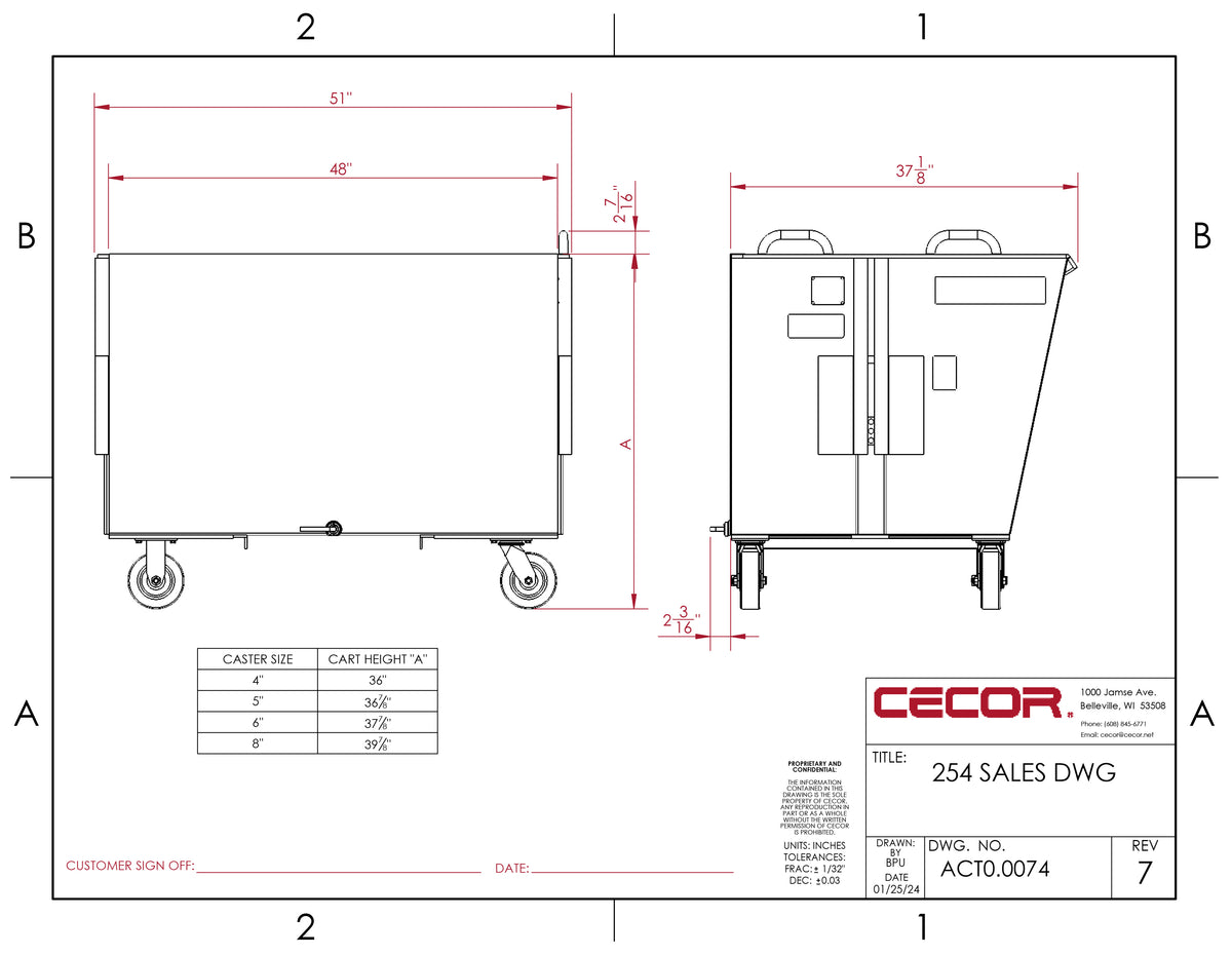 Engineered for industrial environments, CECOR’s Heavy Duty Dumping Cart Model 254 is tailored for medium-load capacity with a minimal footprint. Constructed from heavy-gauge steel and featuring fully welded seams, this self-dumping hopper guarantees durability and reliability, boasting a design that prevents leaks, melting, splitting, bulging, or burning. Mounted on durable industrial casters, it ensures smooth rolling and easy maneuverability, facilitating efficient operation in your workspace.