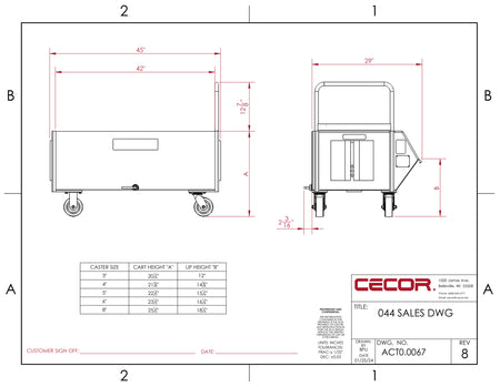 Our intelligent design maximizes cube capacity while minimizing footprint, preserving valuable floor space. With a 15” lip height and an impressive 1,000 lbs capacity, this cart is ideal for fitting under machine tool conveyors, ensuring seamless integration into your workspace. Experience unparalleled efficiency and versatility with CECOR's innovative cart.