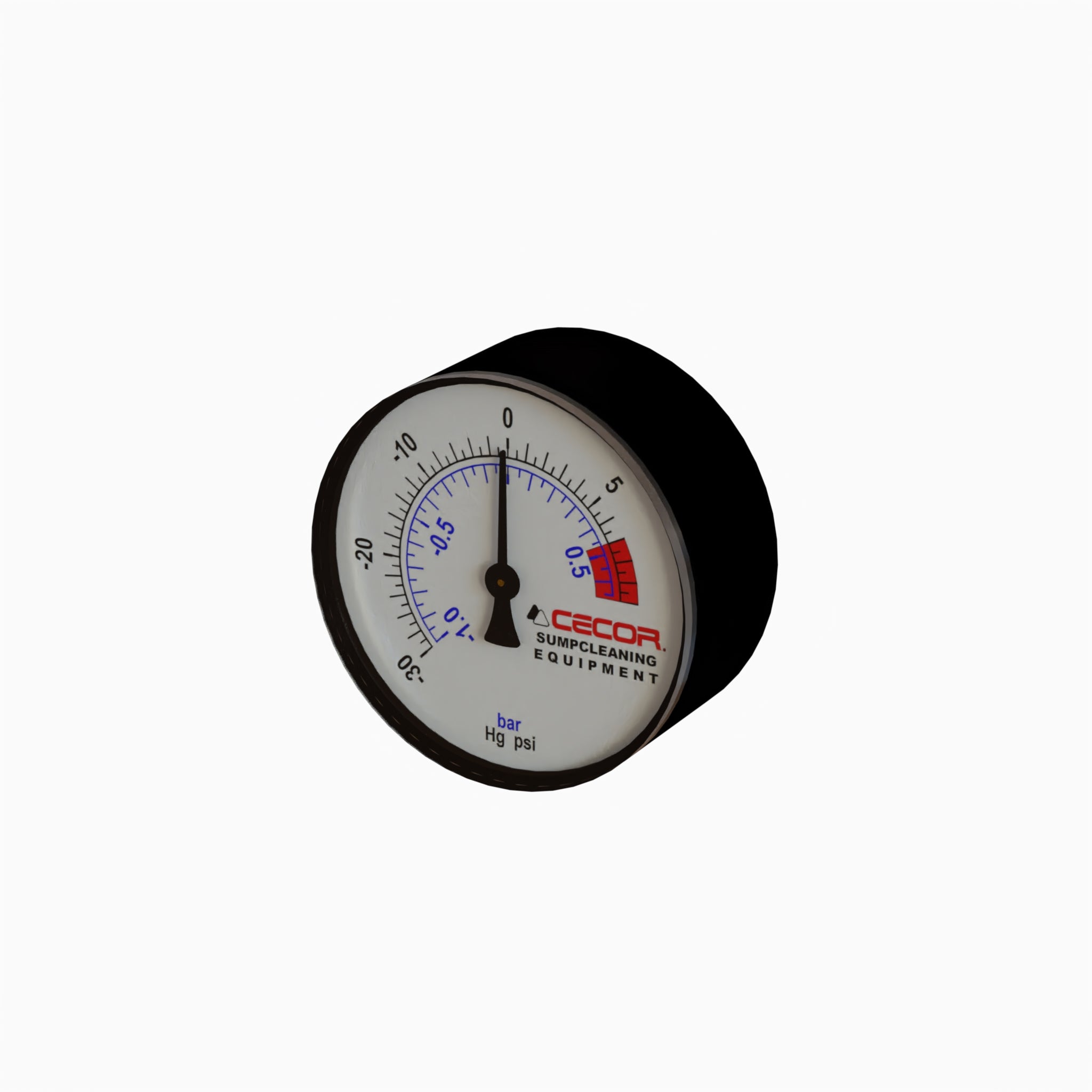 All CECOR sump cleaner are equipped with a pressure gauge. Some are back mounted and others are bottom mounted.